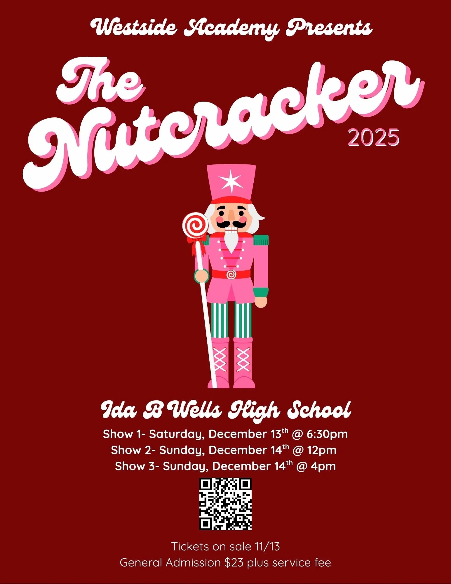 We are very excited about our Nutcracker show featuring dancers from our Westside Performing Company groups. This year, the performance will be held at Ida B Wells High School - 1151 SW Vermont St. Portland.